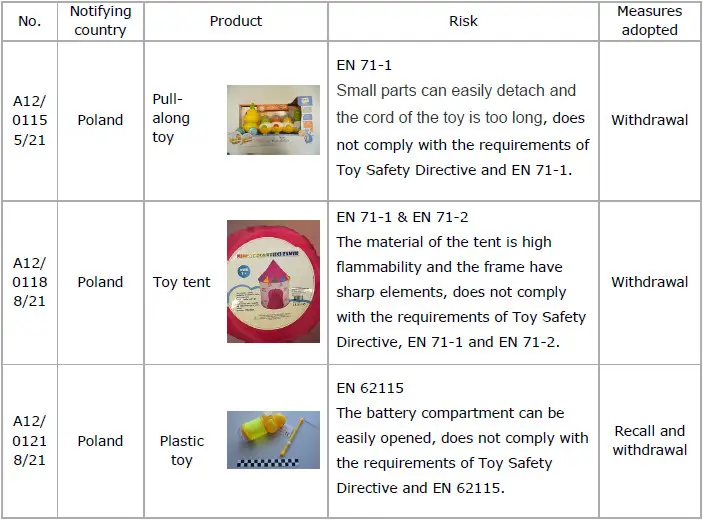 2)15 cases of products that do not comply with the requirements of the Toy Safety Directive were notified. Following are the detail information and part of examples.