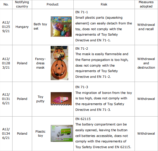 2)9 cases of products that do not comply with the requirements of the Toy Safety Directive were notified. Following are the detail information and part of examples.